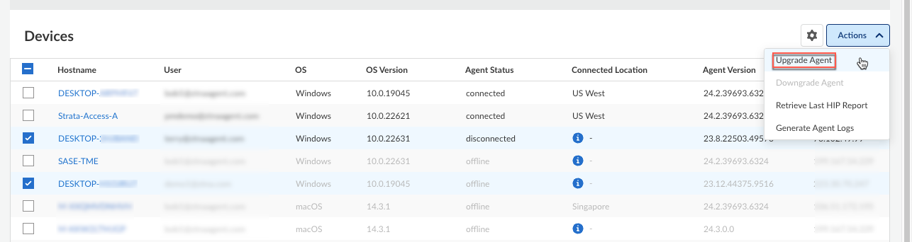 Manually upgrade specificPrisma Access Agents outside of staged rollouts of Prisma Access Agent upgrades.