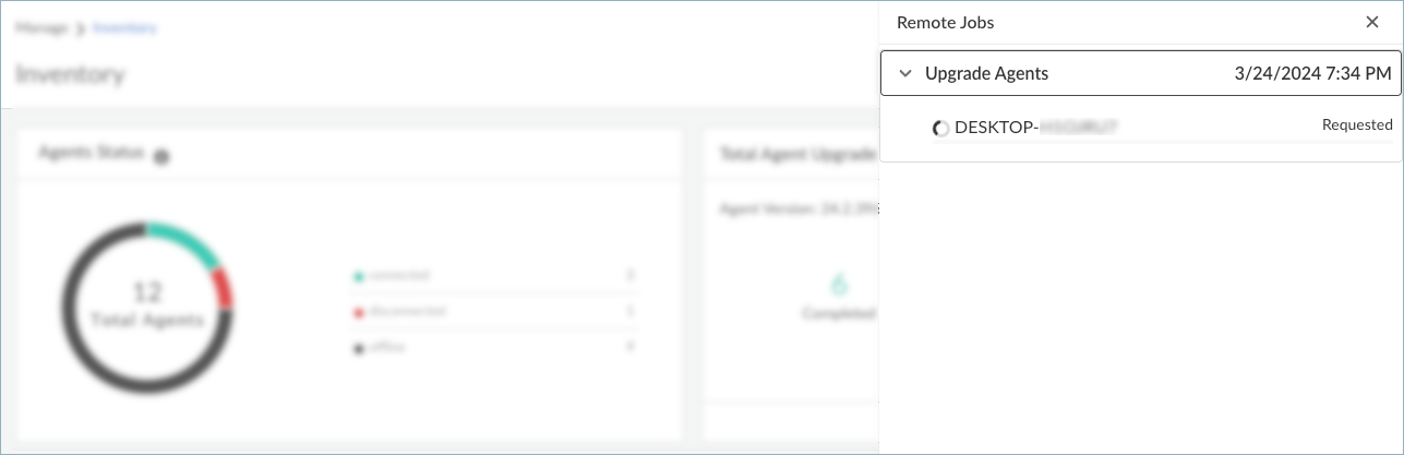 If you upgraded the agent from the device details pane, you must close the pane to see the Jobs button in the Devices table.To view the status of an agent upgrade, click Jobs. The status of the agent upgrade job appears in the Remote Jobs window.