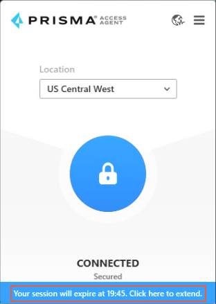 your Prisma Access Agent user session. If you don’t extend the session, it