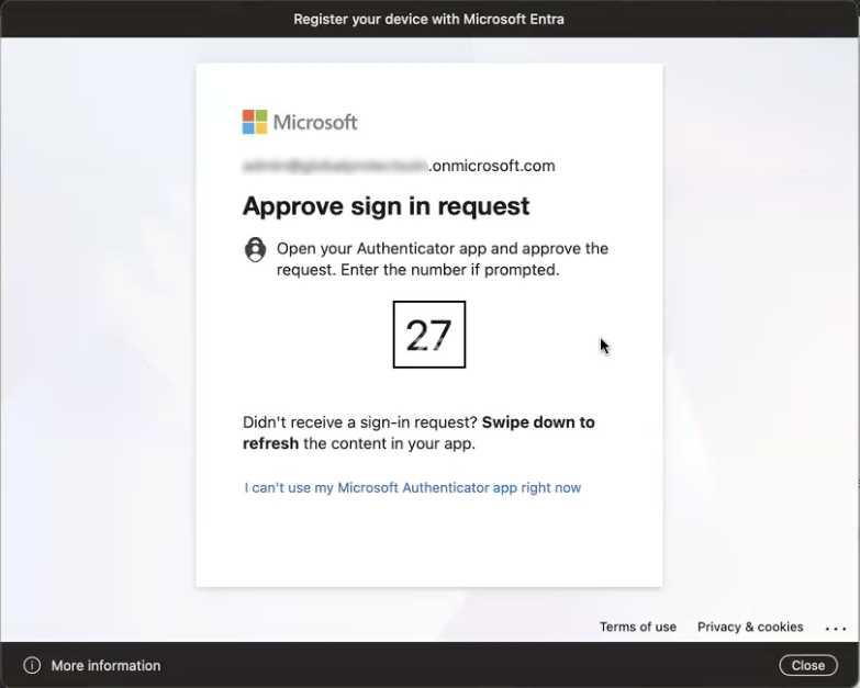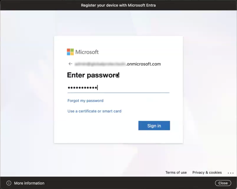 In the IdP login window, such as Microsoft Entra, enter the same credentials that you entered in the Platform SSO window and Sign in.