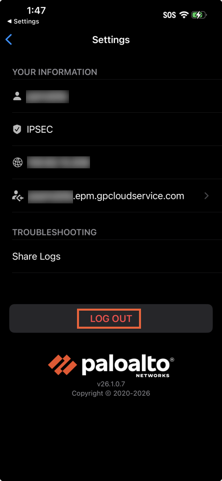 Log Out of the Prisma Access Agent for iOS