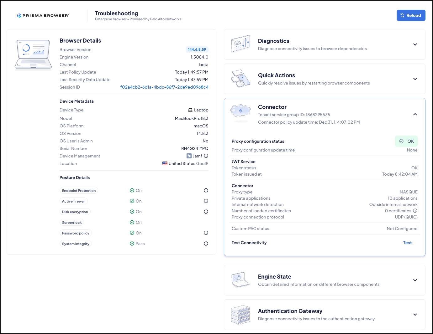 Review the Prisma Browser troubleshooting page for proxy status and routing