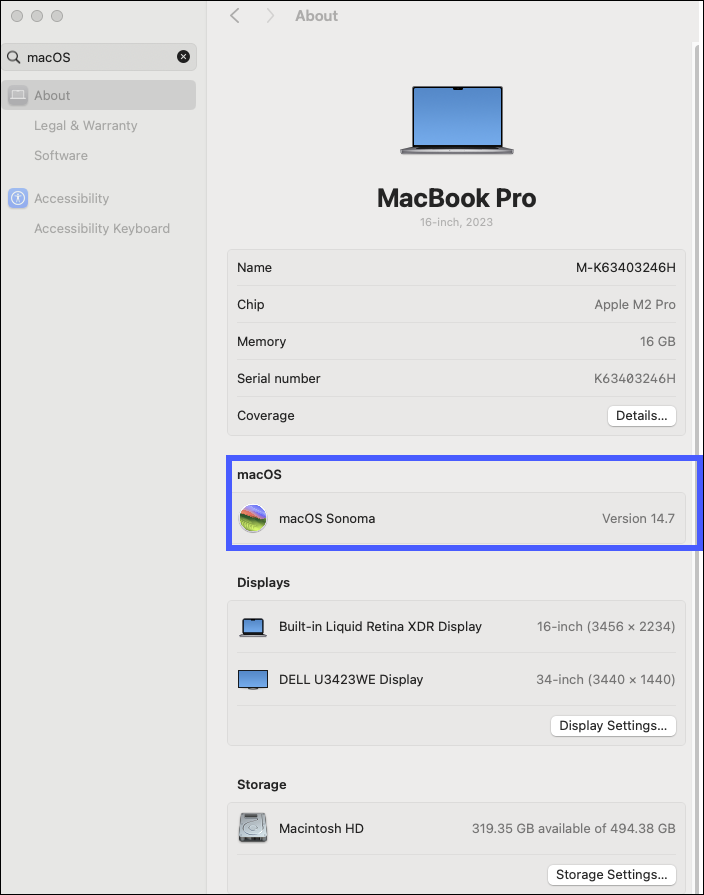 macOS devices- In the System Settings, search or select "macOS."