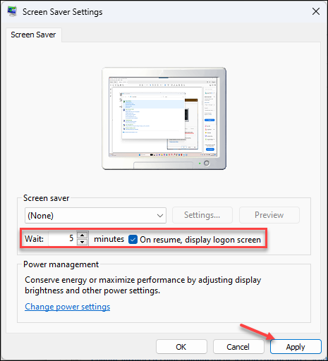 - Select On resume, display logon screen.
