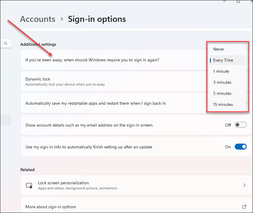 - In the field If you've been away, when should Windows require