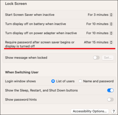 The Active Screen Lock is now activated. - Open the Screen Saver settings (either option can be
