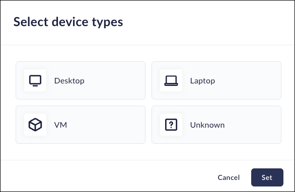 If Prisma Access Browser can not determine the device type it identifies it as unknown.You can select the device type to include in your group by selecting the appropriate type.