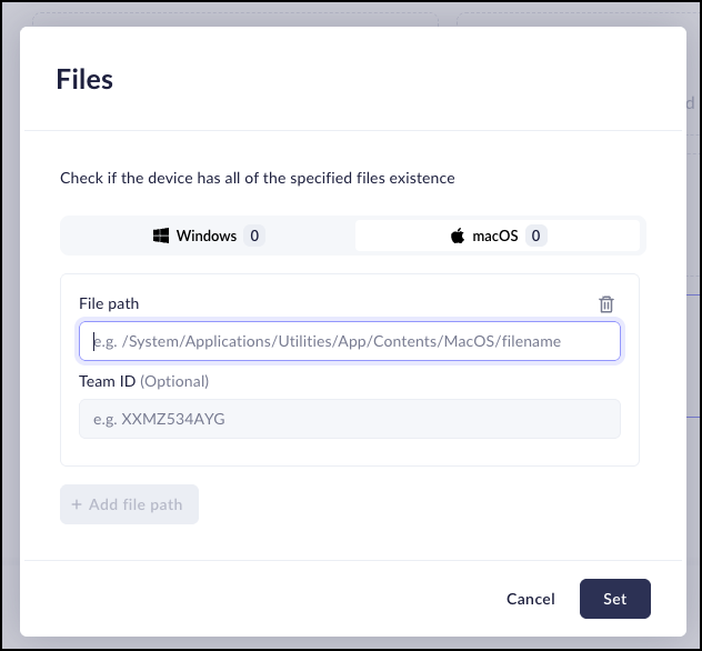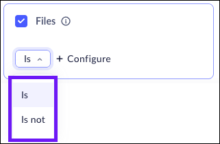 The Files attribute allows you to create device posture rules based on whether or not specific files located on the machine. This feature allows you to create Device Posture Attribute rules for computers running both WIndows and macOS systems. This means that you can create one attribute for both.When this attribute is selected, the Prisma Access Browser will make sure that the specified files are located on the machine.- Select Files.