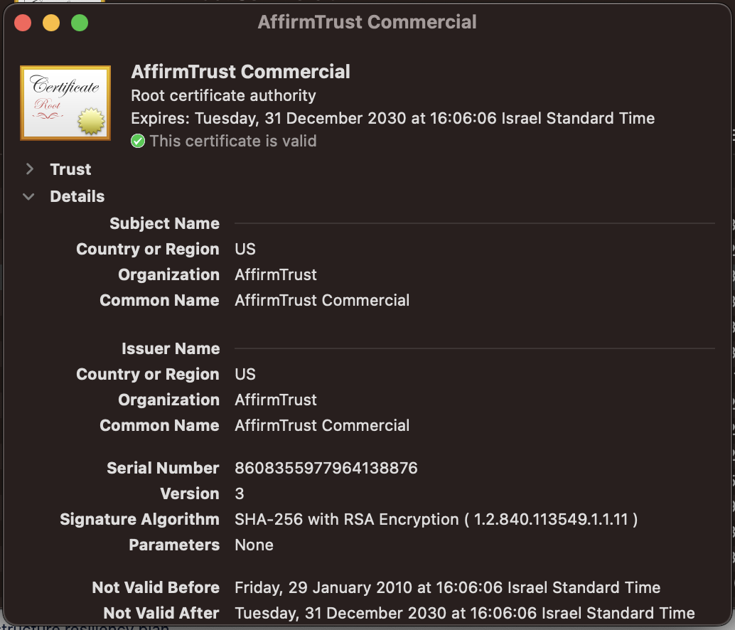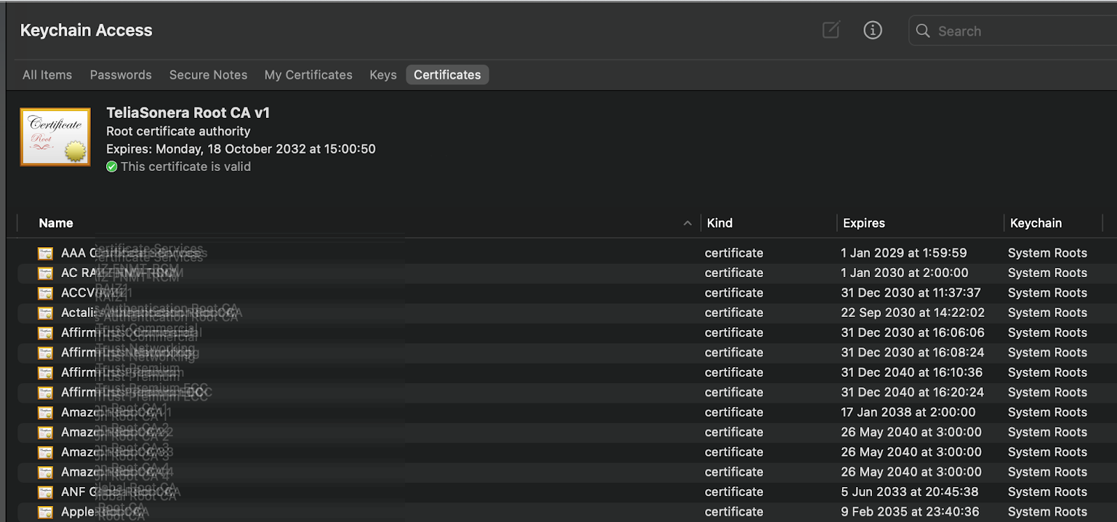 The authority key identifier matches the issuer certificate identifier.macOS devices- From the Launcher, search for Keychain Access.