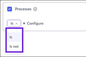 The Processes attribute allows you to create device posture rules based on whether or not specific processes are running. This feature allows you to create Device Posture Attribute rules for computers running both Windows and macOS systems. This means that you can create one attribute for both.When this attribute is selected, the Prisma Access Browser will make sure that the specified process is running (or not running) as you require.- Select Processes.