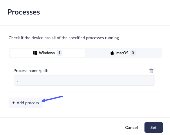- Select the operating system related to the process. You can select Windows or macOS.