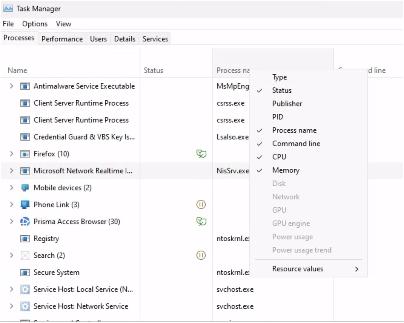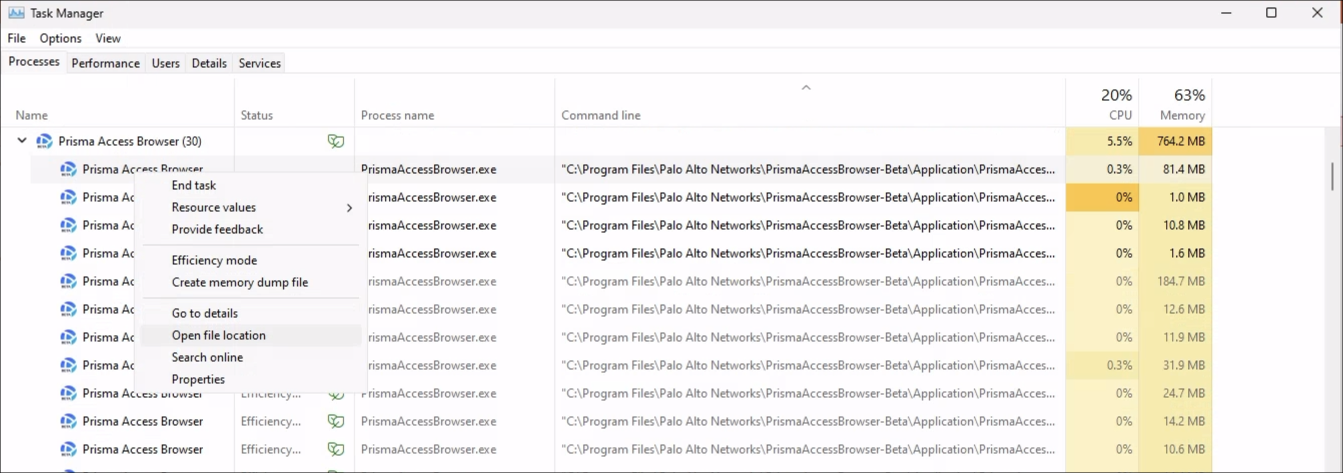 - Right-click on the process and select Properties.