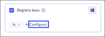 The Registry Key attribute allows you to create policy and posture rules based on the existence of a particular custom attribute that is placed in the Registry Keys. Using this feature, you can use more than one key as part of the device group; Prisma Access Browser will make sure that the devices will have all of the keys that were selected.- Select is / is not to determine if the requirement is a positive attribute (the key exists in the device) or a negative (the key does not exist in the device).