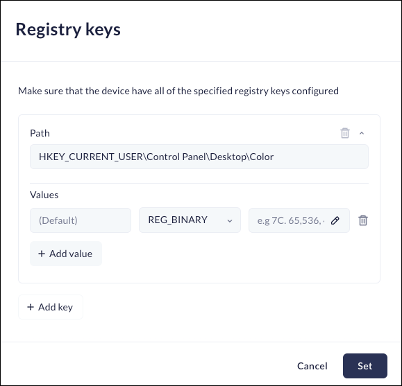 Click Set.Registry Keys (Windows only)