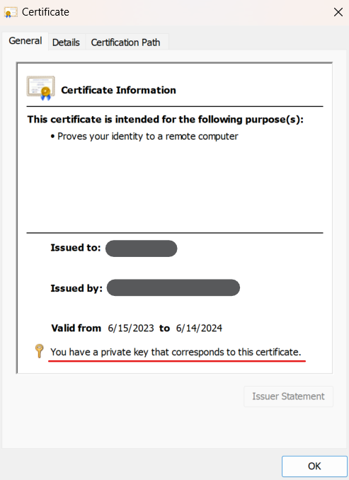 - The certificate contains a private key.
