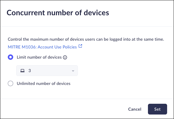 - Limit number of devices - You will be able to limit the number of browser session concurrently. You can set the maximum to between 1 and 5 concurrent sessions per user.