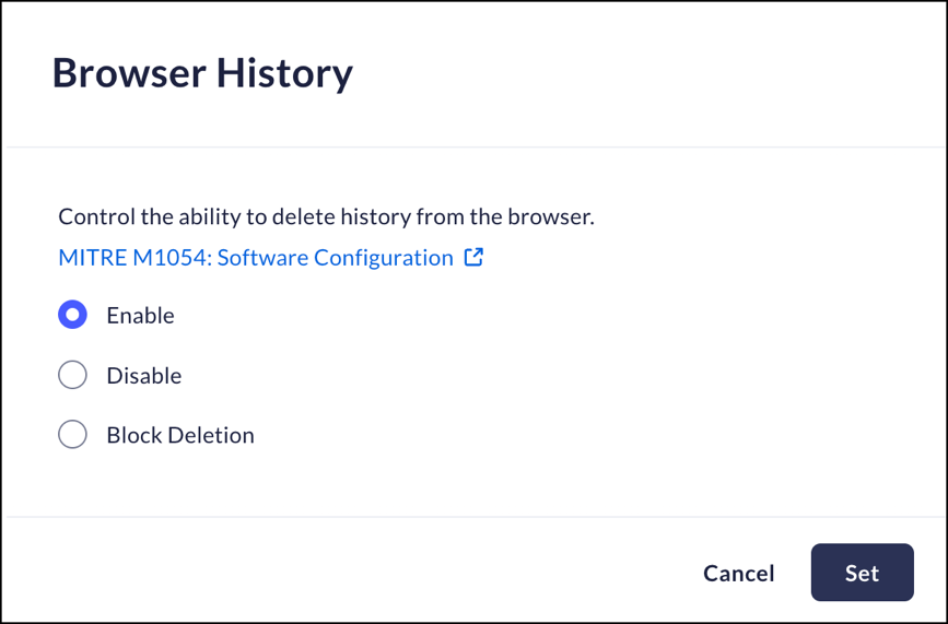 Mobile Browser - No supportThe Prisma Access Browser allows you manage the ability to delete the browser history.- From Strata Cloud Manager, select ConfigurationPrisma Access Browser PolicyProfilesBrowser SecuritySelect Browser History.Select one of the following options: