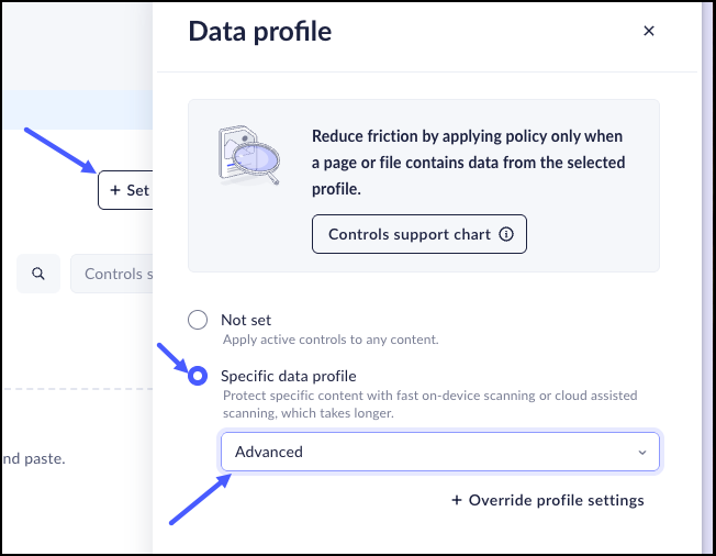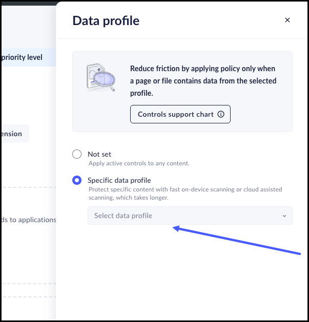 • Specific data profile (Specific content) — Applies controls only to content matched by a selected profile.