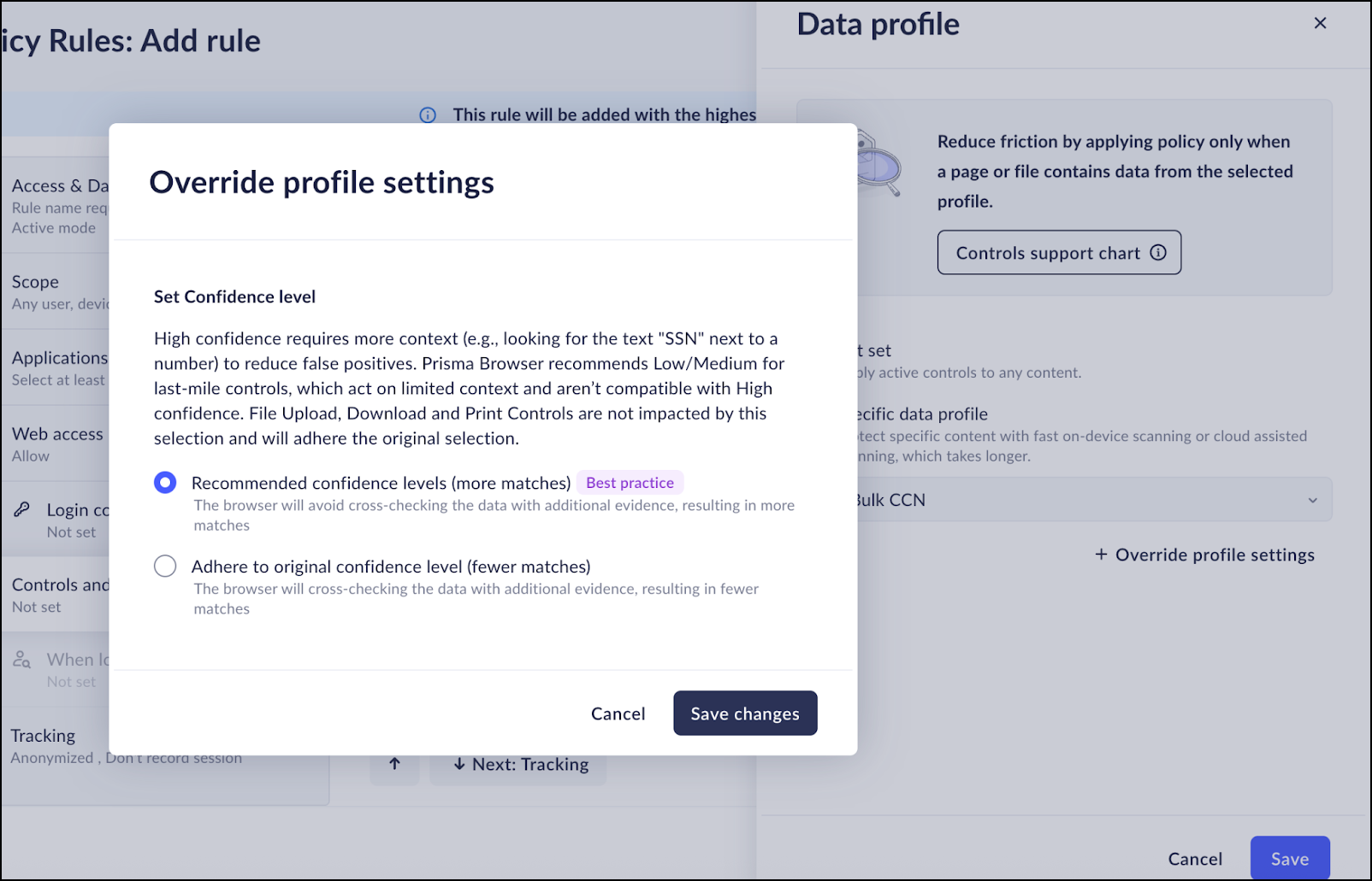 • Data Profiles must be defined in the central EDLP console before they can be applied in Prisma Browser.