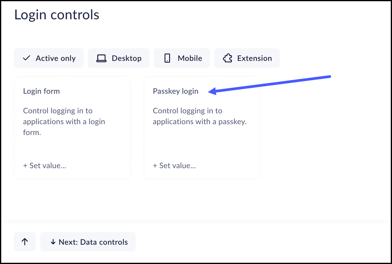 The Passkey Login control is supported on Prisma Browser and Prisma Browser Extension.