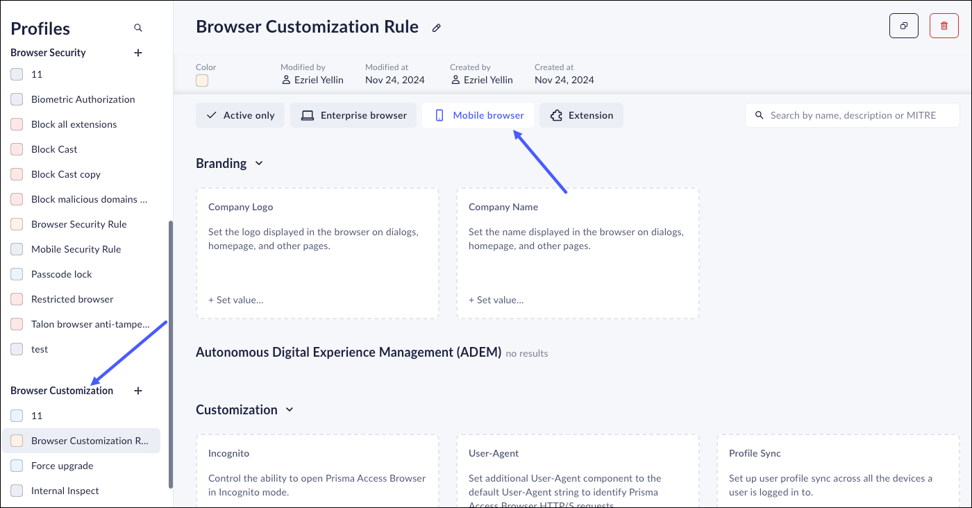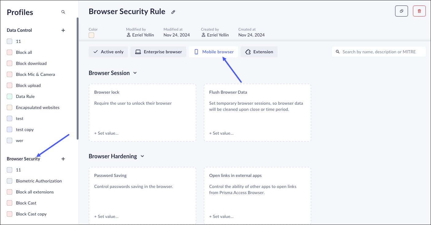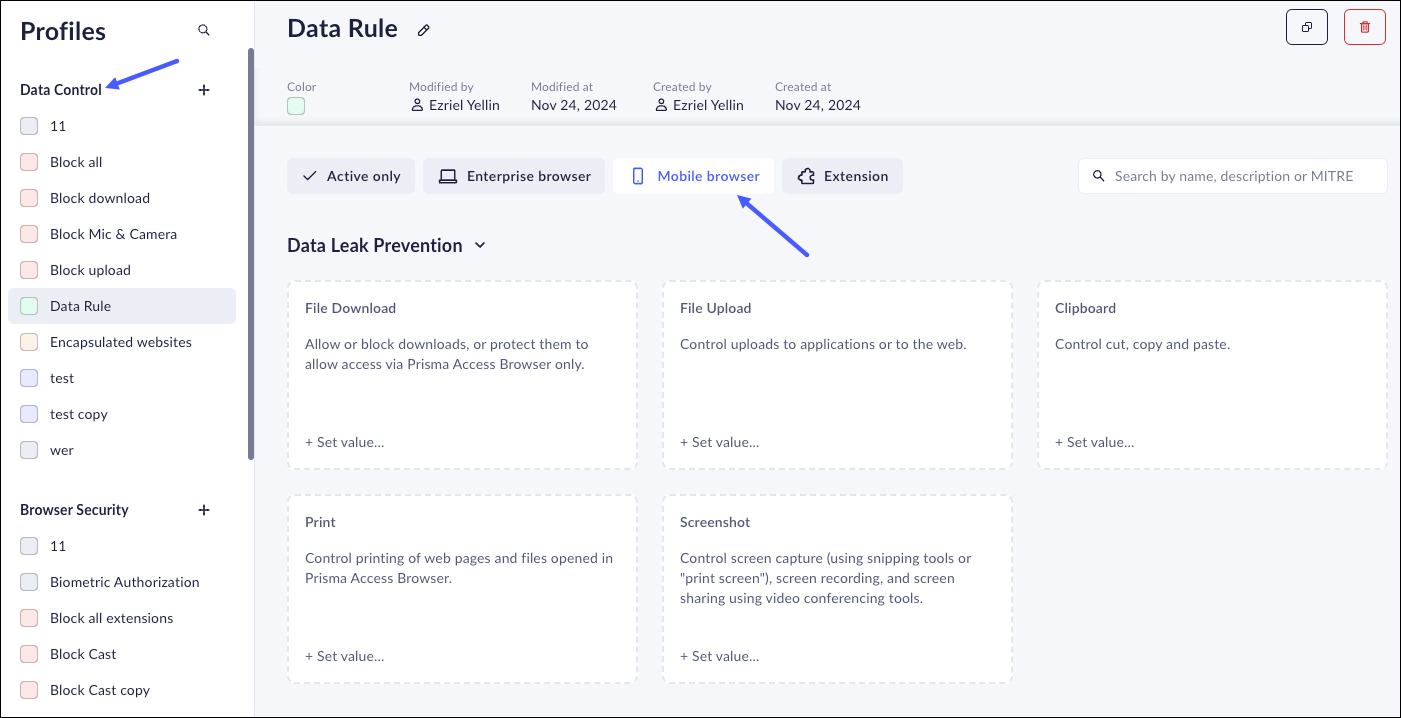 The Prisma Access Browser and the Prisma Access Mobile Browser share policy