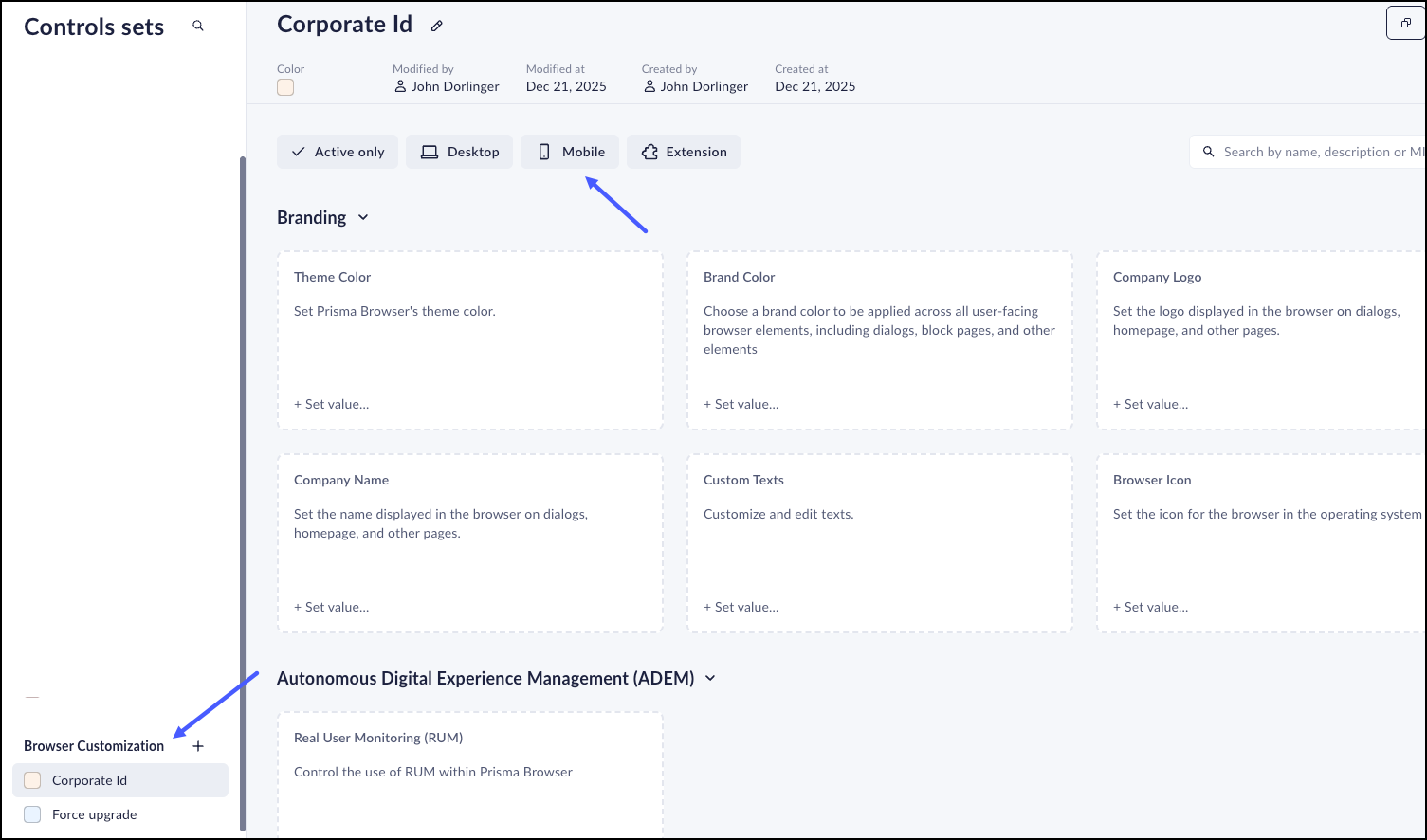 The Prisma Browser and the Prisma Browser for Mobile share policy rules.