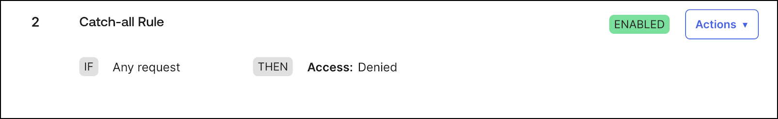 To verify compliance first, configure the app sign-in policy rule that requires device posture claims with the highest priority. You can also apply conditions such as Group, Platform, or Network Zone to target specific users.