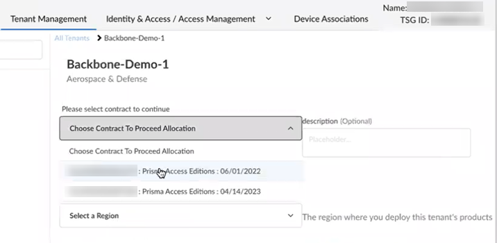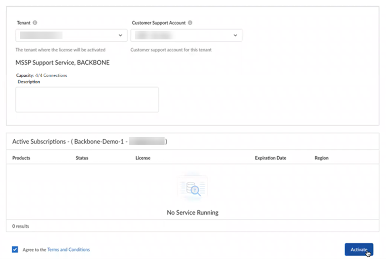 Select the Customer Support Account for the tenant.Agree to the terms and conditions, and Activate.Common ServicesTenant Management displays the status of the activation, such as initializing or complete.After the status is complete, you can activate a Prisma Access (Managed by Strata Cloud Manager) license for any tenant in the multitenant hierarchy and assign the SASE 5G to it.For Add SP Interconnect to Tenant, select one of the following: DVL need to vet this part- Use Prisma Access backbone to use Prisma Access for egress traffic. This uses public cloud providers for network backbone, such as: GCP, AWS, Azure.