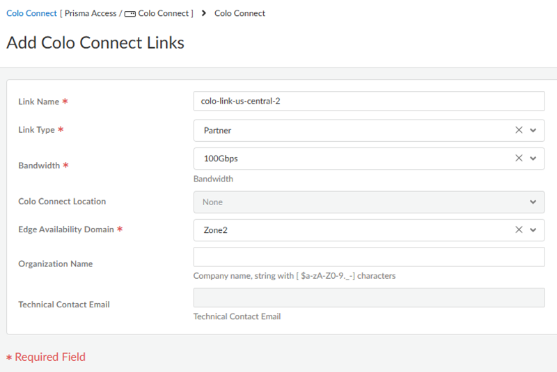 Configure a Colo-Connect deployment in Prisma Access.Configure Prisma Access Colo-Connect—Deployments Using Partner Interconnects