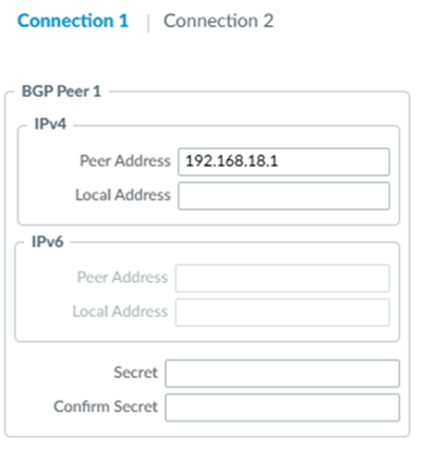 Secret. Disregard the BGP BFD field; it is reserved for a future Colo-Connect release.
