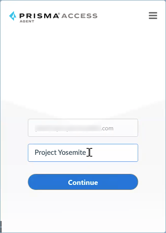 Enter the project name that your administrator sent you and Continue.The maximum length for the project name is 32 characters.