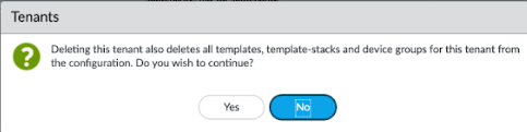 - When you delete a tenant, Prisma Access deletes the template and device group set for which you are licensed, but does not delete the unlicensed set. For example, if you have a Prisma Access for Users license and delete a tenant, Prisma Access deletes the mobile user-related template stacks, templates, and device groups but does not delete the set it created for the unlicensed Prisma Access for Networks. You can manually delete these unused template and device group sets after you delete the tenant.