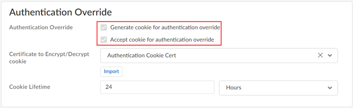 - When you accept a cookie for authentication override on the portal, ensure the cookie lifetime is the same on the portal as well as on the gateway