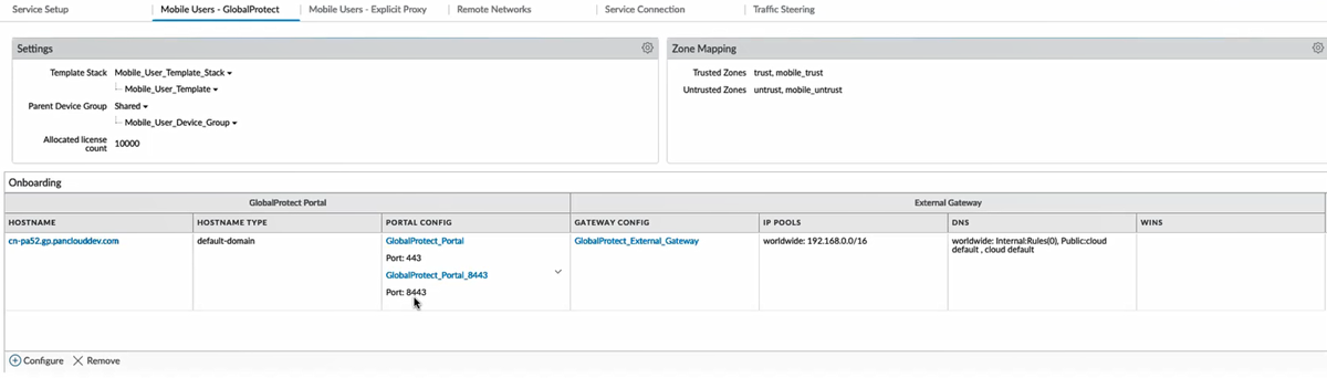 Prisma Access with GlobalProtect multiple portals uses a different port number for