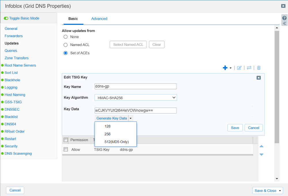 - Log in to your DNS server.Select Data ManagementDNSGrid DNS PropertiesUpdates.Allow updates from Set of ACEs.Add a TSIG Key after filling details.
