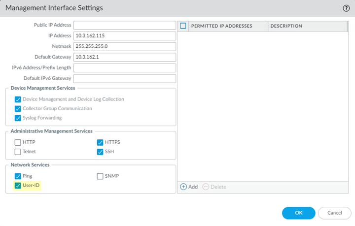 Commit and Push your changes.Configure Panorama to receive quarantine list information from Prisma Access by configuring management interface settings.- In the Panorama that manages Prisma Access, select PanoramaSetupInterfaces.Select the Management interface.Select User-ID.