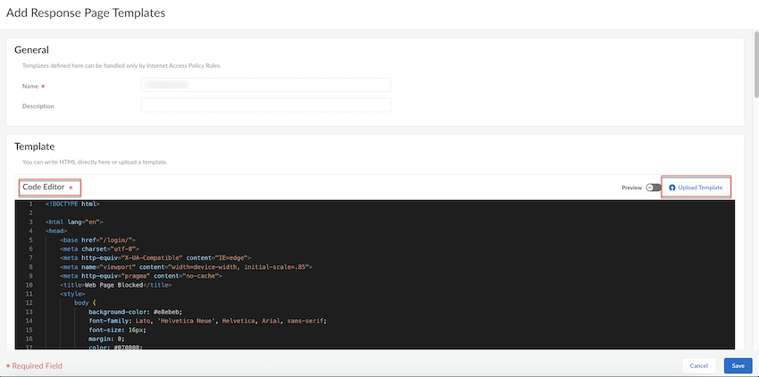 Go to ConfigurationNGFW and Prisma AccessSecurity ServicesURL Access ManagementSettingsResponse Pages.