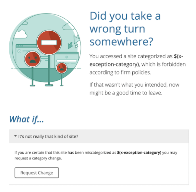 proceed, when access to specific web content is blocked or restricted based on policy.