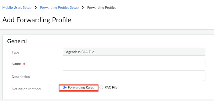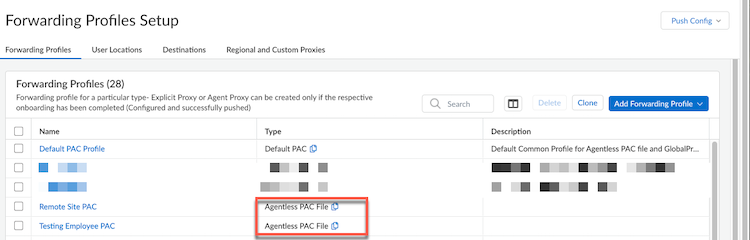 - Select a forwarding profile with Agentless PAC