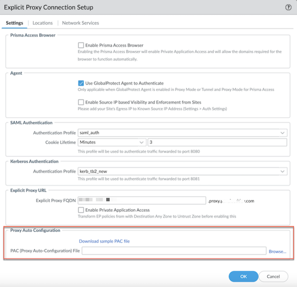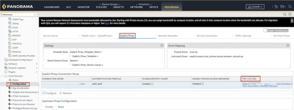 - Manage the PAC file by using a forwarding profile.- Go to ConfigurationNGFW and Prisma AccessConfiguration ScopePrisma AccessMobile UsersForwarding Profiles Setup and click the gear icon.