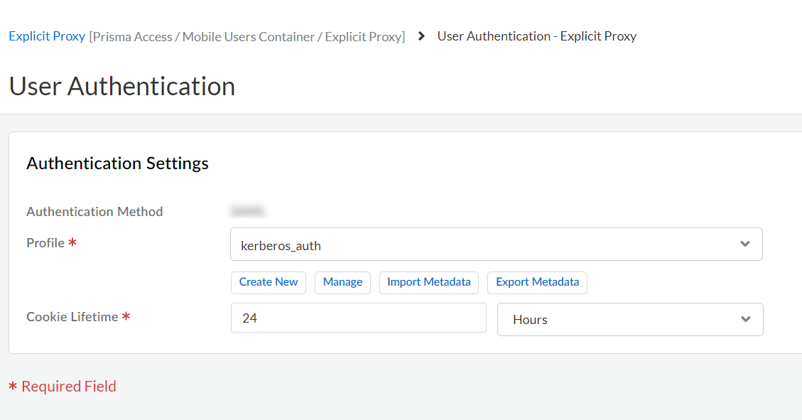 Save your changes.Associate the authentication profile with an authentication method.- Go to Configuration NGFW and Prisma Access and set Configuration Scope to Prisma Access. Select Explicit ProxyUser Authentication.