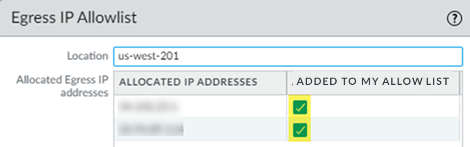 IP allow lists. For new Prisma Access deployments, enable the egress IP allow list