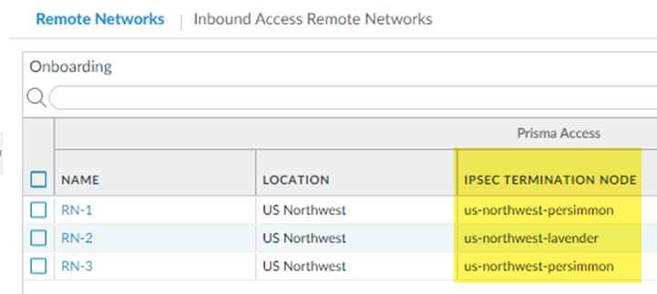 - If you have three remote networks in the same compute location with 100 Mbps each, Prisma Access allocates 300 Mbps of bandwidth to that compute location, provides a single IPSec termination node to that compute location, and associates that IPSec termination node to all three remote networks.