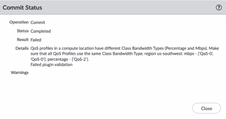 - Be sure to use a Class Bandwidth Type of Percentage instead of Mbps in your QoS profiles. Prisma Access does not support bandwidth types of Mbps in QoS profiles for deployments that allocate bandwidth by compute location.