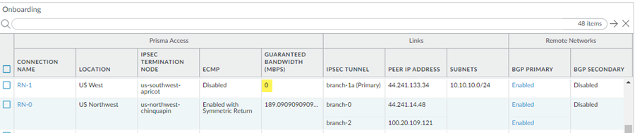 Save and Commit your changes.The guaranteed bandwidth values display in the PanoramaCloud ServicesStatusMonitorRemote Networks area, in the Guaranteed Mbps area. If you did not specify a bandwidth, it displays as 0.