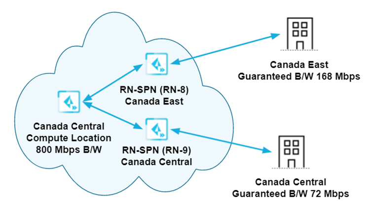 When complete, your configuration has the following guaranteed bandwidth allocation for the two sites.