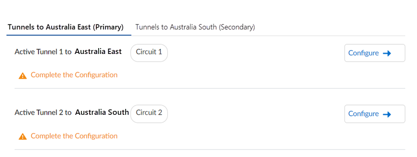 Before you begin setup, it's important to understand how you specify circuits and tunnels. Set up circuits and tunnels in the following configurations:- Active/Passive—Set up either one circuit (the