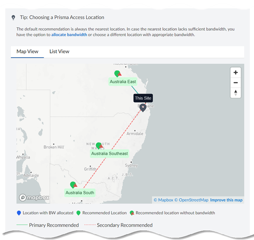 Prisma Access provides you with a map with suggested locations to assist you with choosing one.