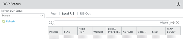 - RIB Out—Routing information that Prisma Access advertises to its peers through BGP update messages.