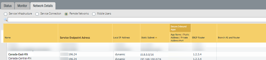 Canada: Central Canada and Canada East. Prisma Access assigned the same Service Endpoint Address
